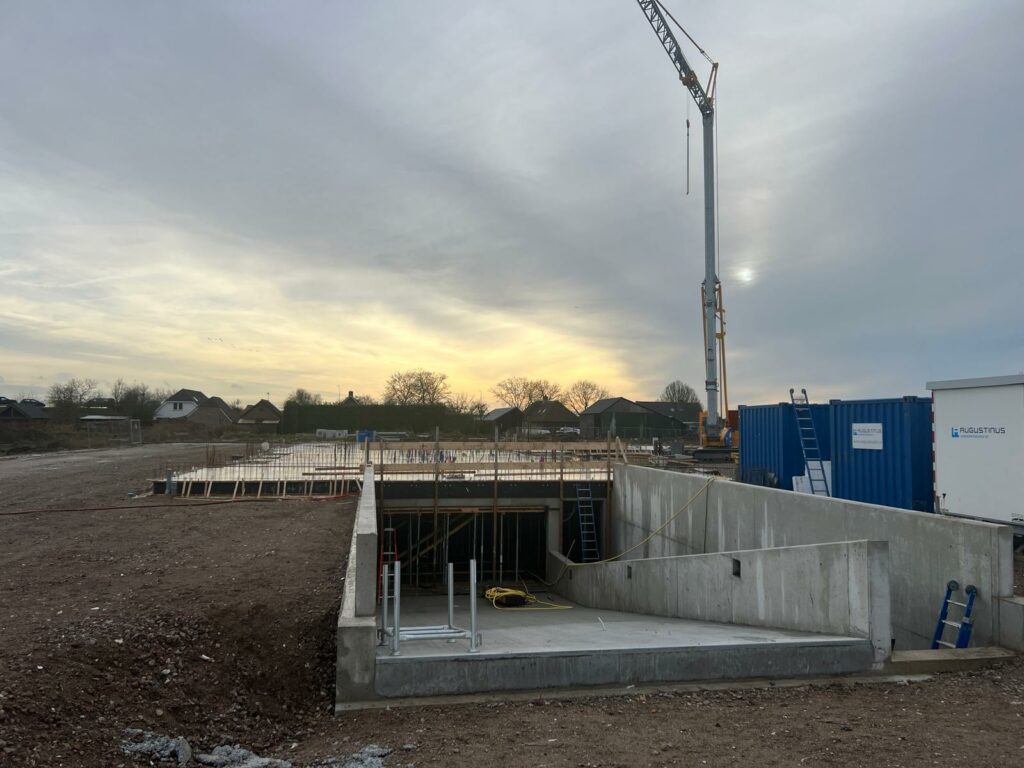 De bouw van dit complex is reeds gestart. De bergingen en parkeerplaatsen zijn reeds gerealiseerd in de kelder. Nog voor de Kerst is de begane grond vloer gestort en gaan we nu de hoogte in. Het complex bestaat uit 27 huur appartementen welke eind 2026 worden opgeleverd aan de nieuwe bewoners.